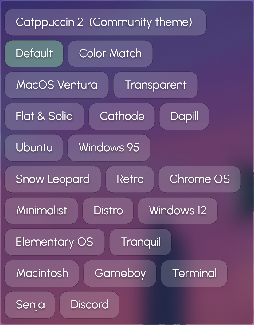 In the `Droptop settings >> Themes` menu you'll see all the default themes you can use.